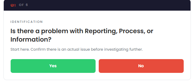 The logic is simple. Start by confirming there's actually a problem. Then work out whether the system was used. If it was used, did it behave correctly? If it didn't, was the person trained? Is the issue recurring? Can a workaround hold?